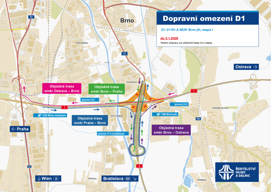 Tato stavba "D1 01191.A MÚK Brno jih" je jednou z částí souboru staveb rozšíření dálnice D1 na šestipruhové uspořádání.
